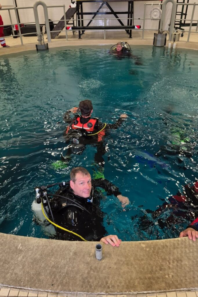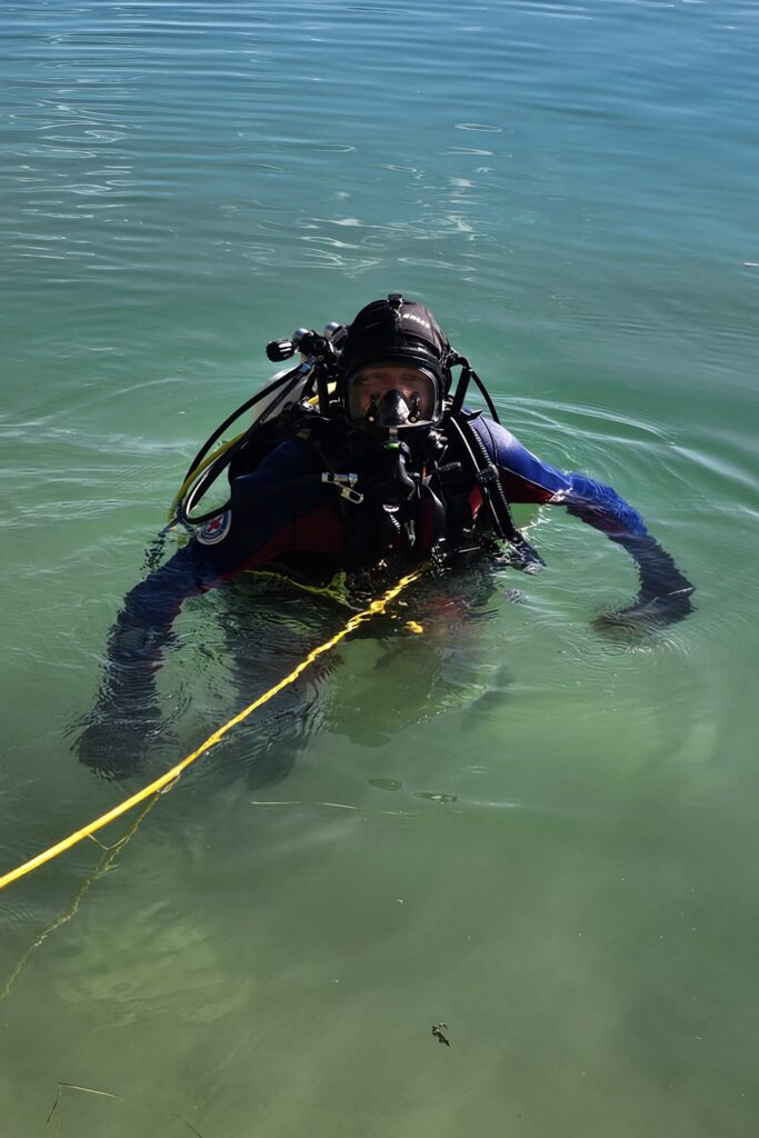 Sonst eher im Schwimm- und Erlebnisbad Wolnzach am Beckenrand unterwegs – jetzt aber mal mit ganz anderer Ausrüstung: Pressluftflasche, Vollmaske, Tauchanzug und Blei am Gürtel. Warum? Ich hab’s gemacht – die Ausbildung zum Einsatztaucher der Wasserwacht!